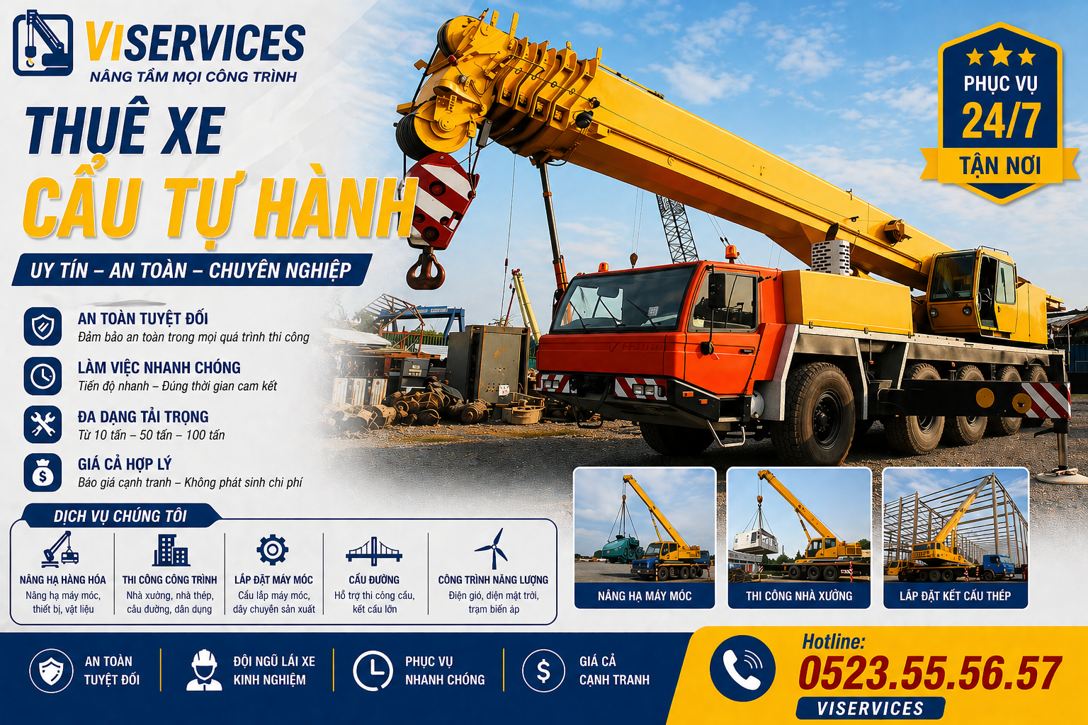- ✔ Cho thuê xe cẩu theo dự án